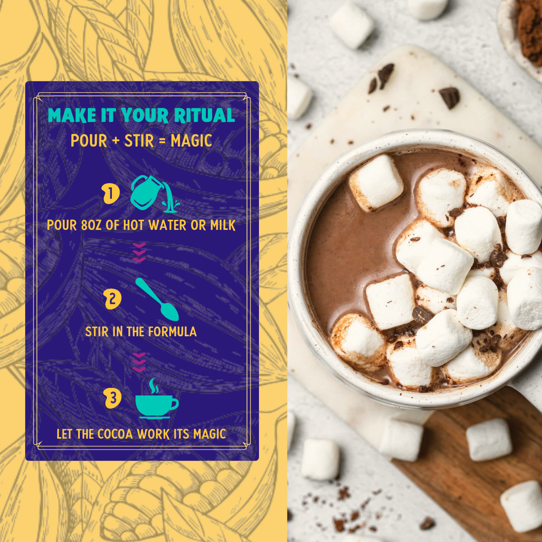 • Each 10.2oz bag makes 10-12 servings of an 8oz cup of hot cocoa