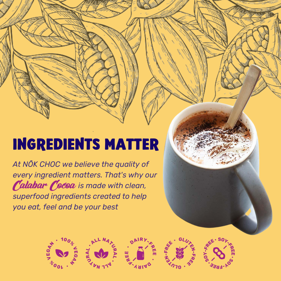 Cane sugar, cocoa powder (processed with alkali), maltodextrin, gum arabic, coconut oil, natural flavors, salt, sunflower lecithin.