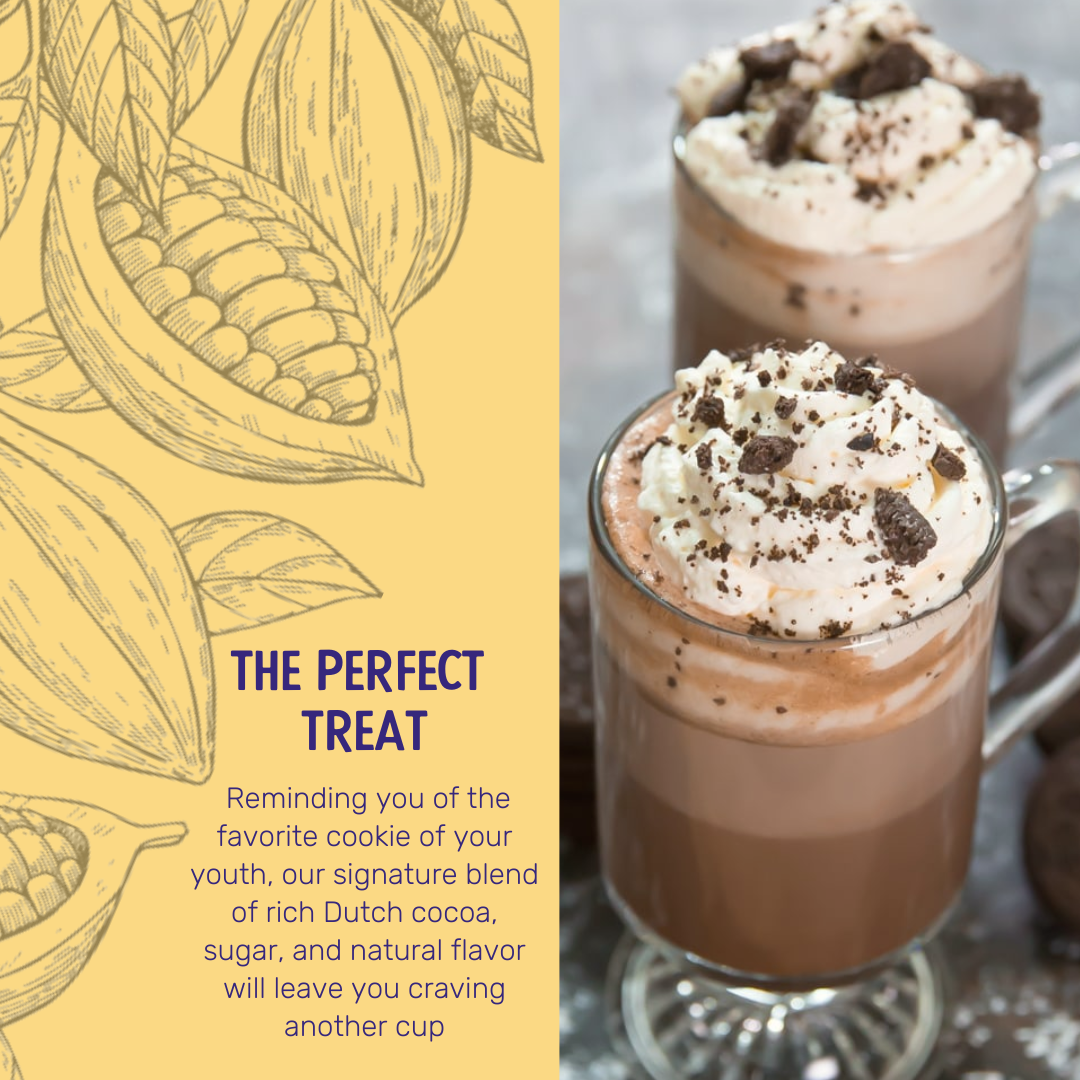 Our Cookies ‘N’ Cream flavor is the perfect treat for yourself, or someone you love. Reminding you of the favorite cookie of your youth, our signature blend of rich Dutch cocoa, sugar, and natural flavor will leave you craving another cup.