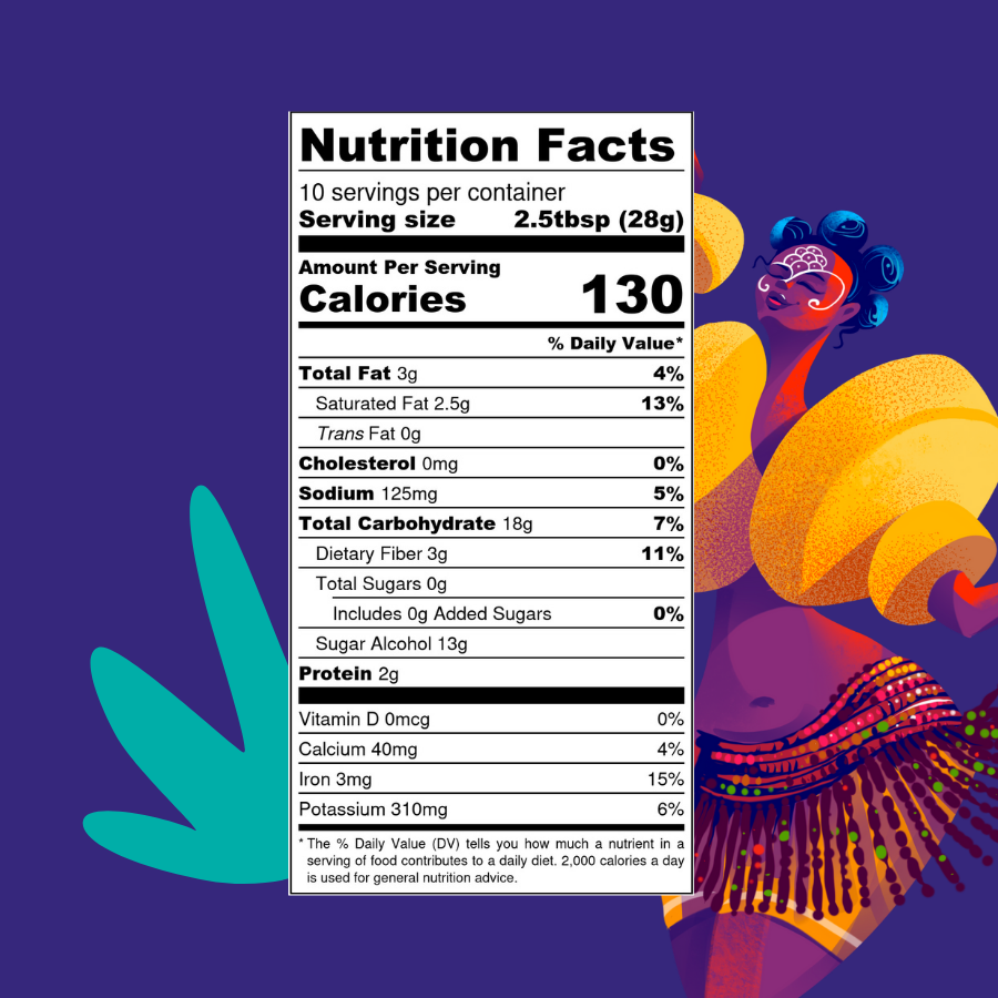 Erythritol, Cocoa Powder (processed with alkali), Maltodextrin, Less than 2% of: Gum Arabic, Coconut Oil, Natural Flavors, Salt, Monk Fruit Extract, Sunflower Lecithin.